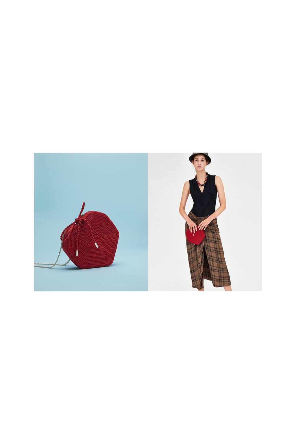 A segunda opção, a bolsa pequena e vermelha foi a que mais gostei.